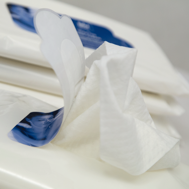 - Entnehmen Sie ein Tuch aus der Packung und verschließen diese wieder fest.