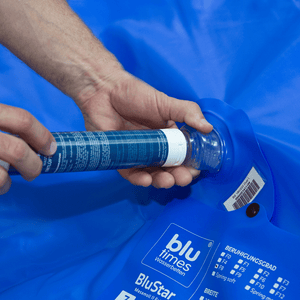 - Wenn die gesamte Luft abgepumpt ist, senken Sie den Einfüllstutzen bis das Wasser am oberen Rand steht. Anschließend können Sie die Entlüftungspumpe abschrauben und Abdichtungskappe plus Matratzenverschlusskappe wieder anbringen.
