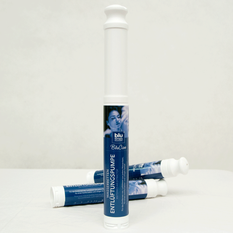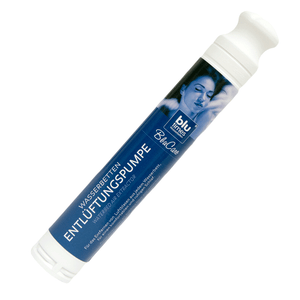 Mittels der Entlüfterpumpe können Sie auf einfache Weise sämtliche Luftblasen aus Ihrem Wasserbett entfernen. Dieser Vorgang sollte innerhalb der ersten vier Wochen nach Aufbau oder Neubefüllung des Wasserbettes ein bis zwei Mal wiederholt werden. Wiederholen Sie den Vorgang immer dann, wenn Sie hörbare Wassergeräusche (blubbern) wahrnehmen.