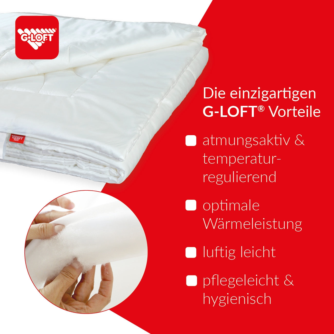 - Füllung: Klimasoftvlies aus 50% TENCEL™ Fasern + 50% G-LOFT® Klimahohlfaser