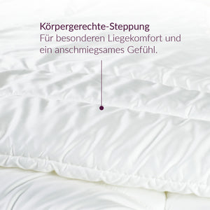 Seidig glänzend, geschmeidig, luftig leicht und leicht kühlend - so beschreibt man am besten die PREMIUM AIR EVOLUTION Kollektion. TENCEL™ Lyocell nimmt Feuchtigkeit effizienter auf als Baumwolle - gibt die Faser ihre Feuchtigkeit ab, so spricht man von Verdunstungskälte - diese sorgt für den leicht kühlenden Eigenschaften der TENCEL™ Faser. Im Inneren sorgt das atmungsaktive Klimasoftvlies bestehend aus 50% TENCEL™ Lyocell und 50% G-LOFT® für eine zusätzliche Klimaregulierung.