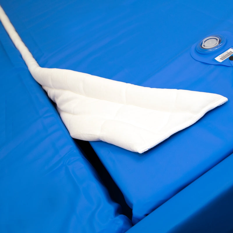 - Die oben eingenähte Textilwulst verhindert ein Hinunterrutschen unter die Wassermatratzen/-kerne.